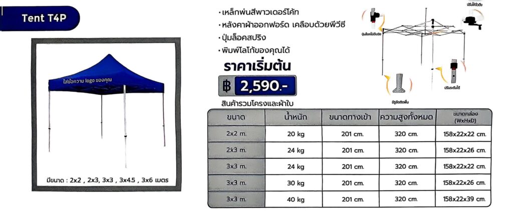 – มีโครง 3 รุ่น รุ่นหนายอดนิยม รุ่นหนาพิเศษอีเวนท์ รุ่นหนาพิเศษขาหกเหลี่ยม